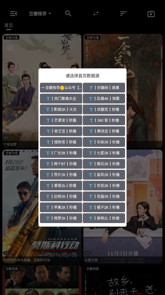 3、打开手机上的投屏软件,选择电视设备,进行匹配。