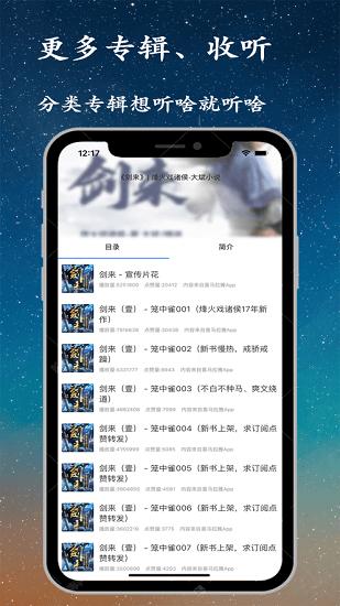 1、后台播放:支持后台播放,并且还能自动播放下一集,听书更便捷