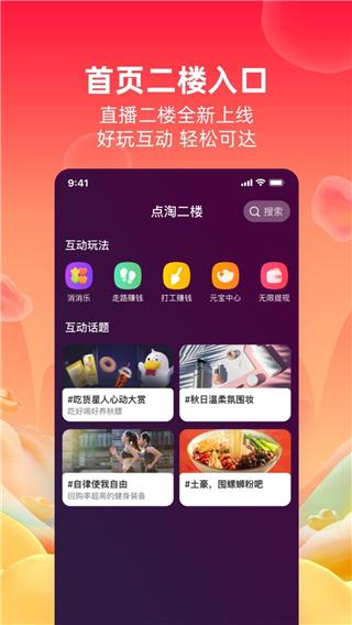 点淘app是一款直播购物软件,通过短视频和直播的形式,为用户带来全新的购物体验。它拥有丰富的活动和福利,让用户在享受购物乐趣的同时,也能获得更多的实惠和惊喜。用户可以随时随地通过手机进行购物,方便快捷。根据用户的购物习惯和偏好,点淘app能为用户推荐合适的商品。喜欢购物的小伙伴可以尝试这款软件。