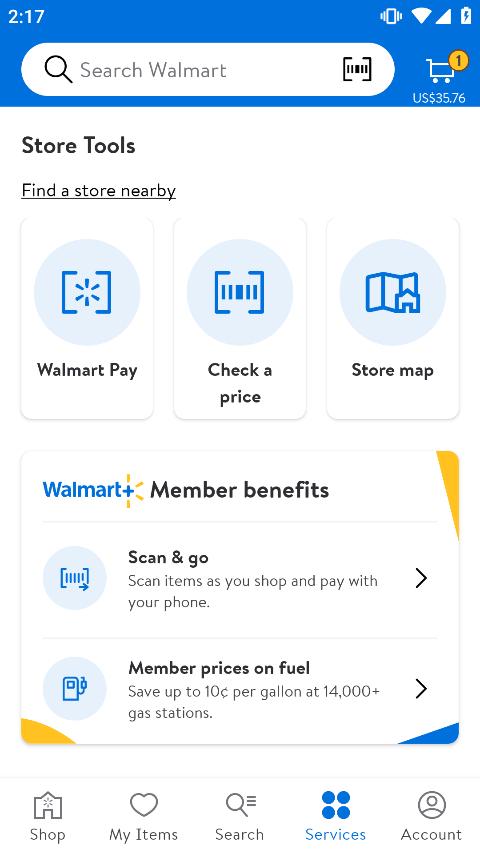 4、还能在“services”里面看到一些专属于沃尔玛的专属服务,扫码等。