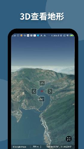 4、3D查看地形:立即输入地名大全、河流、道路查看中国的3D地形