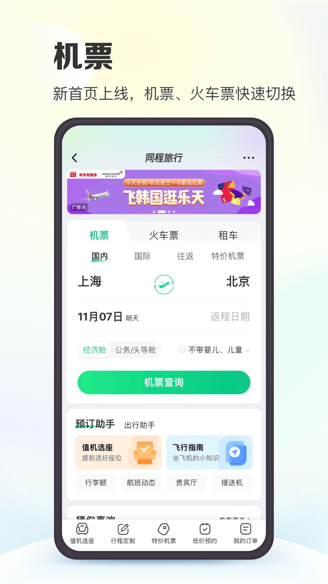机票:特价机票天天有,最低1折起;价格透明,大额优惠券天天领;免费选座,在线值机,随时掌控航班最新状态;线上退改更便捷,退改签不收取额外费用。