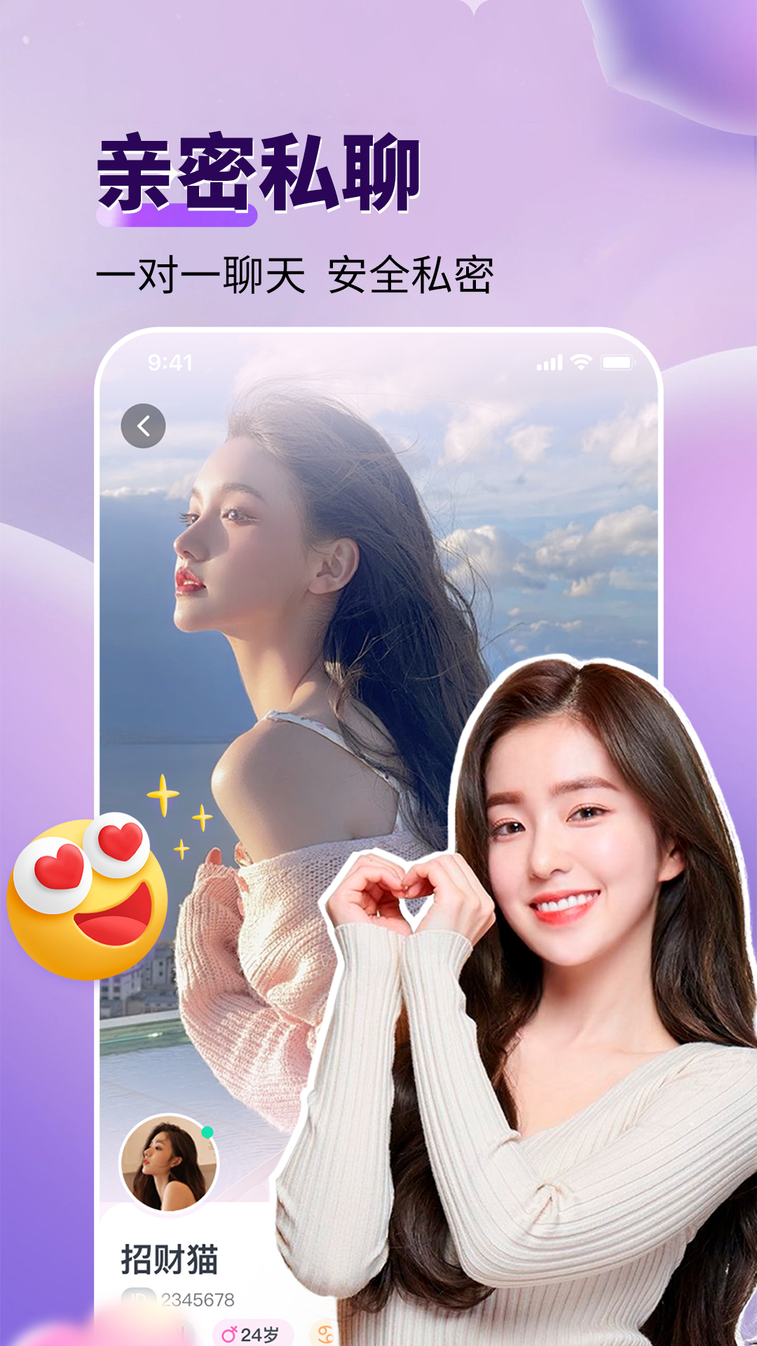 1、亲密私聊互动,一对一聊天互动,安全的私密互动,轻松交友。