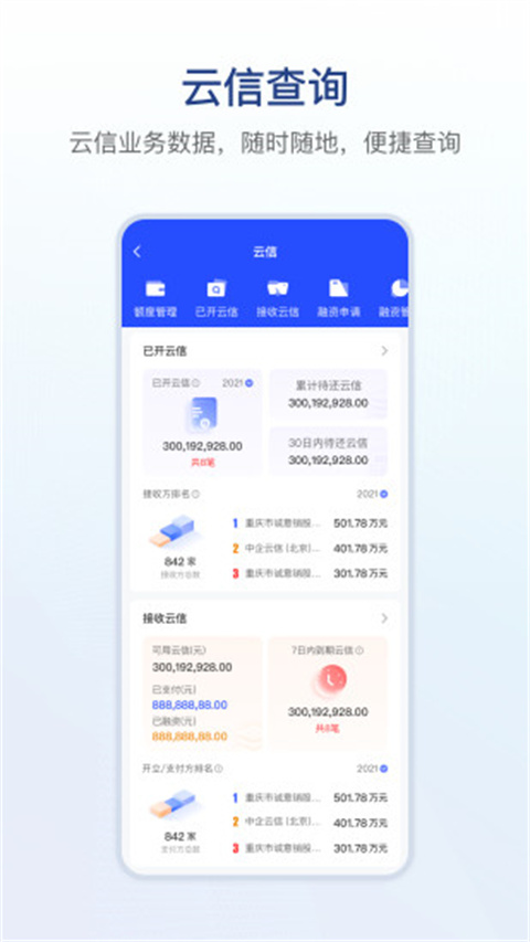 用户可选择到云信查询功能来查询到云信中的各项业务数据信息内容