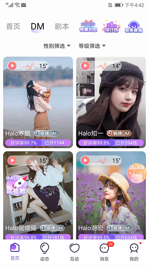 6、「专业DM」:每位DM都经过培训,专业、优质,24小时应对各种剧本类型,多样声线,演绎不同剧本人生,带你一秒沉浸,足不出户体验正版好本!