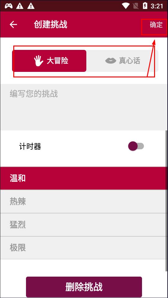 4、接着会让玩家从真心话或者大冒险当中选择一个参与挑战,根据自我想法可以随意选择