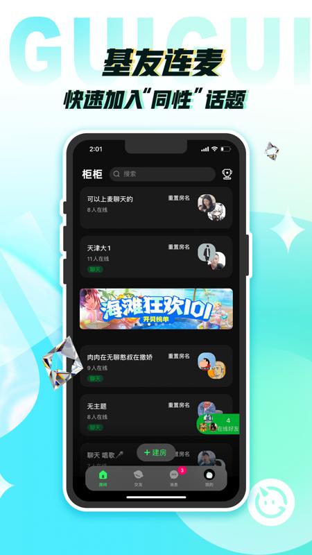 柜柜交友app,是一款能够和你的基友一起来聊天的社交软件,多元化的帅哥都能在里面找到,不同的外貌和性格,都会给你带来完全不一样的体验。并且包含了语音、发帖、打字等在内的多种不同交流方式,认识朋友也更加简单,汇聚来自五湖四海的小伙伴,展示真实自我,在线互动交友,多种趣味玩法等你来。