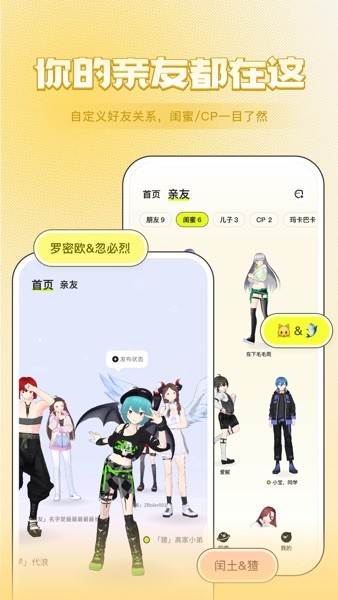 在ZRole,可以结识各类好友,创建属于你们的自定义亲友关系;