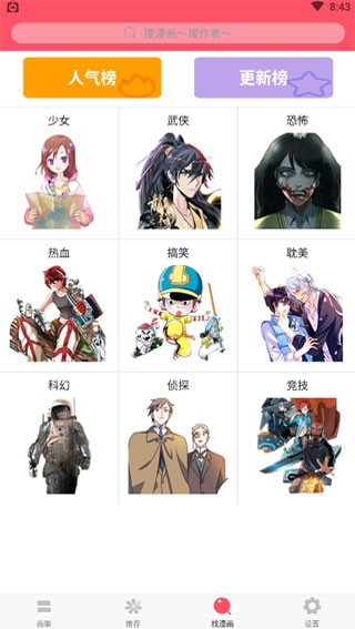 漫画岛APP,是一款适合漫迷使用的漫画阅读APP,以海量的漫画资源,清晰的画面,个性智能的搜索,简单的操作,清新的界面,带给您前所未有的漫画阅读体验。 漫画岛APP特色 1、最全漫画库,追新神速 上万部国内外(日韩、欧美、港台)完美漫画,各类题材(....