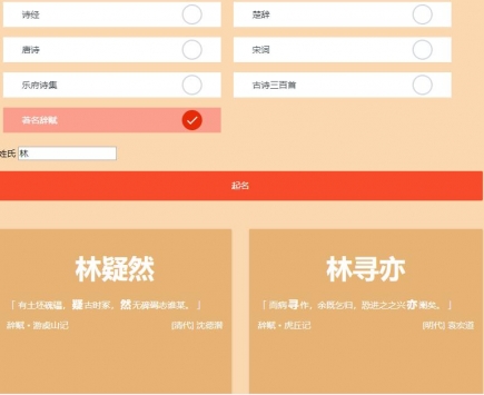 古诗词起名app是一款通过古诗词的解读为你搭配出一个十分具有古典和诗意的名字,只要输入你的姓氏,和选择对应的古诗题材,即可出现属于你的 古诗名字,感兴趣的用户赶紧来古诗词起名app试试吧。