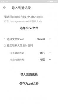 一个可将Excel文档中的联系人批量导入到你的手机或者将手机里的联系人导出到Excel文档的小程序;
