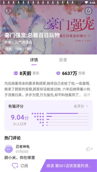 有猫漫画app给大家带来了十分多样的漫画内容,你能够在app内浏览最新的连载作品、最热的高分佳作等,尽情浏览喜欢的漫画故事。app内的漫画资源非常丰富,各种类型题材一应俱全。恋爱漫、热血漫、游戏漫、古风漫、悬疑漫、玄幻漫等通通一网打尽,全面满足不同读者的阅读兴趣。