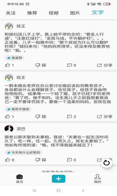 今日神段是一款非常受欢迎的趣味短视频软件,里面为用户整合了超多的趣味视频以及搞笑段子,用户可以根据自己的需求随意的进行浏览,遇到自己喜欢的段子或搞笑视频还能分享给好友让好友一起开心非常不错,为大家枯燥乏味的生活带来了更多的乐趣,喜欢的小伙伴还在等什么,赶紧来本站下载今日神段看看吧。
