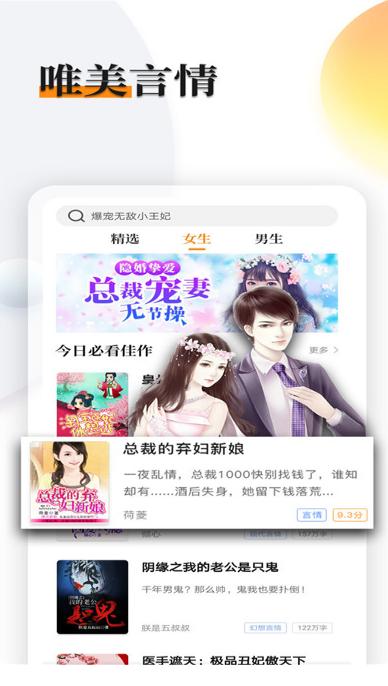 3、全面的小说类型,言情、玄幻、武侠、穿越、修仙、重生、宫斗、校园等一应俱全