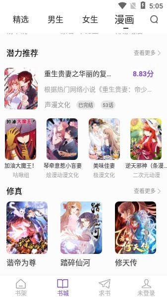 2、在“求书”频道中直接搜索我们想要看的漫画,然后就可以直达搜索结果;