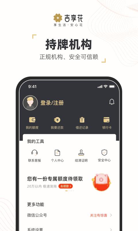 吉享花是一款相较于同类型软件功能更为强大的网上购物软件,在吉享花软件里,用户将体验到和其他同类型软件不一样的操作特色,获得更为良好的视同体验。同时,会为用户们带来可以提高额度的贷款产品,里面有非常专业的客服,只要你申请了就可以满足你的需求,赶快来下载到手机上体验吧!