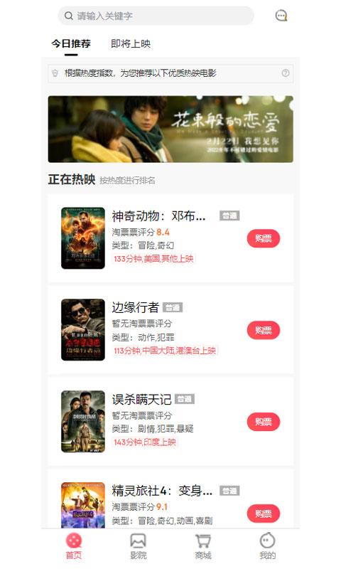 3.轻松挑选各种的电影票,也能了解各种电影的播放器结合时间安排。