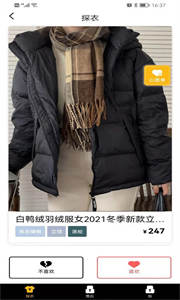 探衣app拥有十分丰富多样的服装货源,随时随地都可以查看最新最火的穿衣风潮,为你推荐各种爆款穿搭,超低价就能轻松买到。探衣优惠购衣商城还可以根据你的穿衣口味智能筛选合适的服装。感兴趣的话就来下载探衣吧!