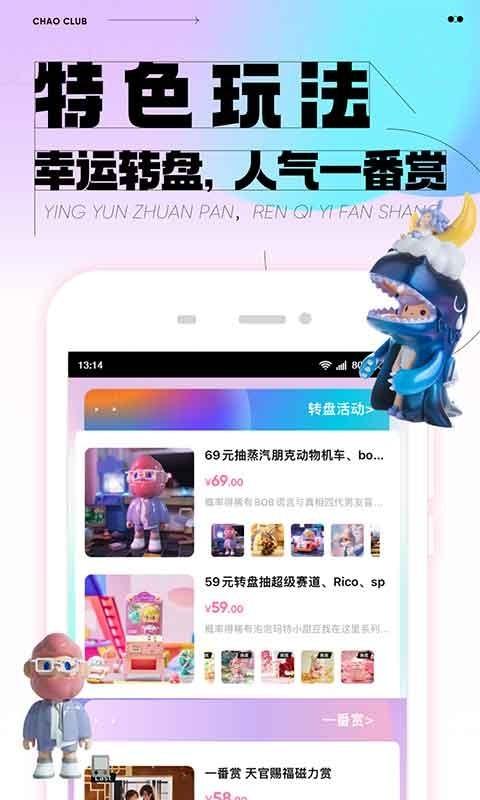 平台中不仅为用户提供了非常丰富的盲盒,每个用户都能够随时在平台中匆忙和还有各种优惠活动,各种人气爆款盲盒随机掉落,还能够随时邀请你的好友和他一起在线抽盲盒,各种热门设计师系列的各种盲盒,一应俱全,每个玩家都可以自由选择。