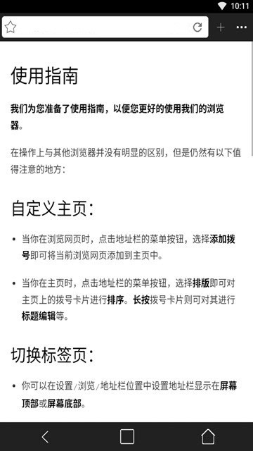 君悦浏览器是一款非常实用的手机浏览器软件,它加载网页的速度非常的快,能够给你提供流畅的上网体验,并且这里还有书签功能,随时随地记录你爱逛的网页!首页上面为用户提供了多个的网站入口,一点即达,十分的快捷,更有无痕浏览功能,完全保护用户隐私,喜欢的用户可以前来下载体验!