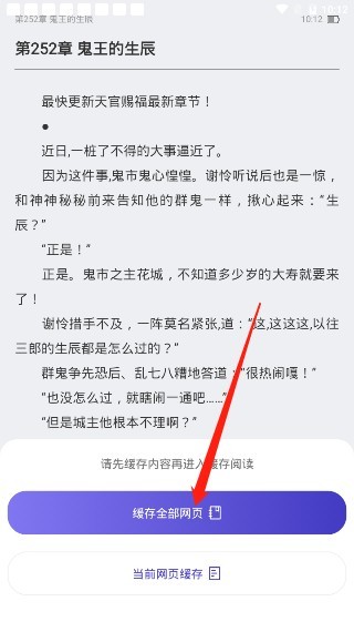 5、现在我们就来到了小说的阅读的界面,先点击手机屏幕中心,然后我们在点击右上角的“下载”图标。