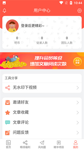 3.还可以享受平台提供的无水印下载视频,分享就可以获得此机会,还有各种团队可加入。