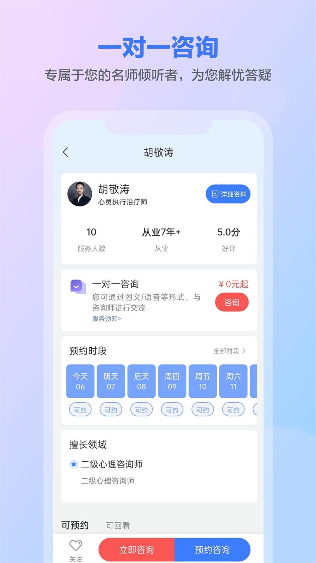3、平台提供专业的心理咨询服务,打开手机即可随时在线学习。