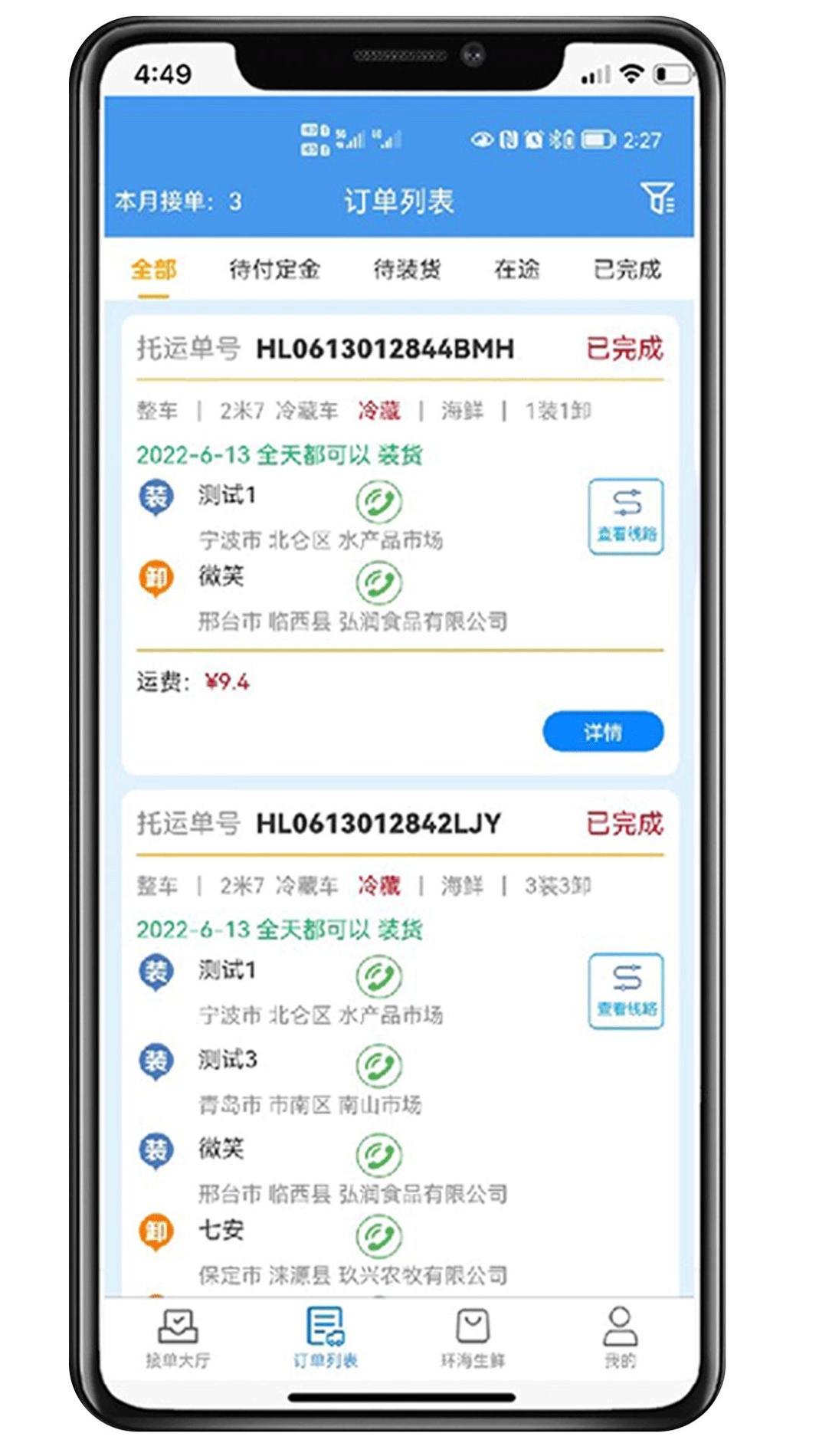 环海冷链app是一款非常便捷又好用的生鲜配送平台软件,在软件中,用户将能够去使用软件来进行生鲜的冷链配送,软件里面用户能够去进行生鲜的下单,多种运送方式可供用户使用,提供快速的即日达。软件非常便捷方便,软件功能强大,欢迎用户去进行下载环海冷链。