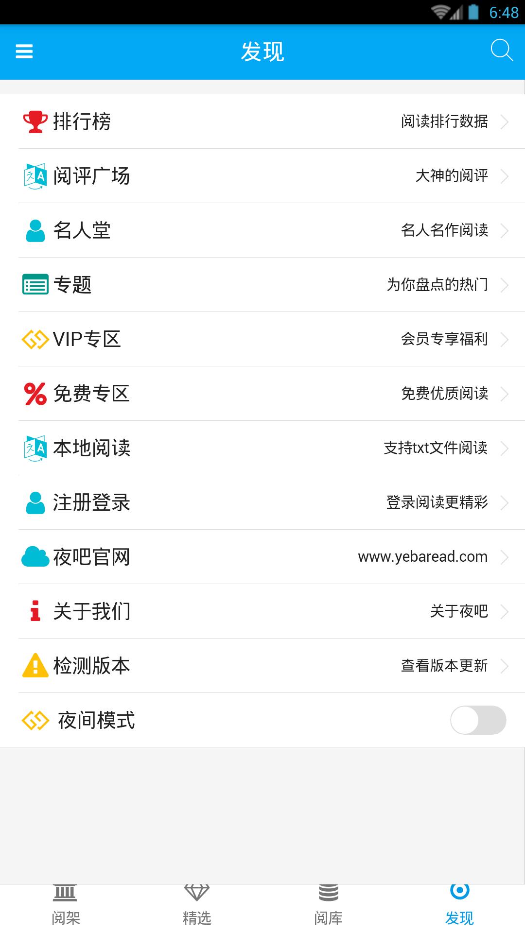 夜吧app是一款能够协助用户迅速扫描仪手机上当地文件格式的软件,那样您就能够了解当地有着的书籍资源了,用户就能够在app中轻轻松松阅读了;用户还可以阅读服务平台为您提前准备的各种小说集,让您能够获得大量完整小说,线上变成会员用户之后,用户就能获得大量的褔利;app会全自动的开展云空间同歩,全自动的储存您的阅读数据信息。