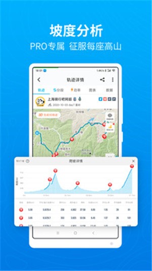 2.实时监测记录速度,海拔,坡度,通过GPS定位轨迹无偏移。