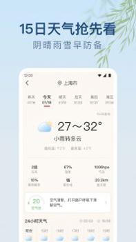 6. 15天预报:详细预报天气状态,温度、风向、空气质量等,四季变化提前准备。