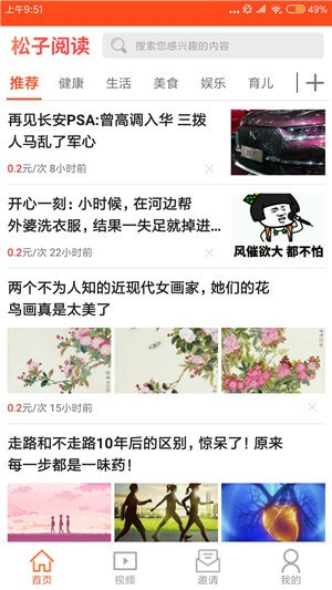 松子阅读是一款阅读转发就可以轻松领到收益的软件,随时都能给用户带来不一样的阅读内容,用户能够在这里很快的搜索找到自己想要看的内容,一键就能够进行转发领取到收益,签到、邀请都会有额外的奖励,感兴趣的朋友快来下载使用吧。