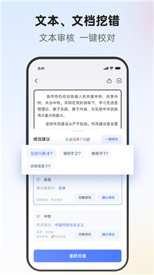 3、点击修改建议的右上角“一键修改”,即可自动修改文本中的错误信息、敏感信息等,再复制文本,就能够导出文本放心使用了