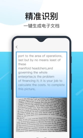 支持一键拍照识别文字,将纸质文档秒变电子档,并可实现汉译英。
