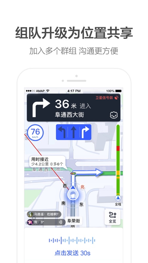 1、提供智能语音助手,包含十几种语音声音供用户选择自己喜欢的声音导航,让用户驾车更放松。