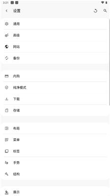 4、点击导航栏左侧第一个更多图标,可以对浏览器进行各种设置