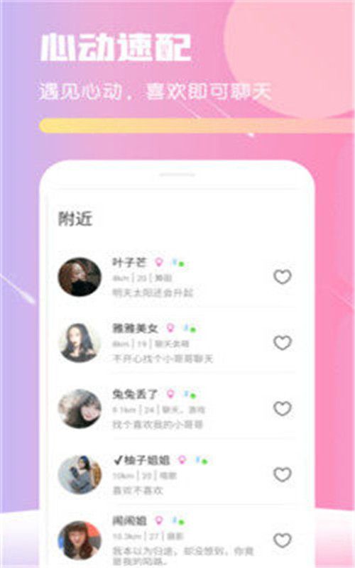 2、用户群体涵盖了各个领域和年龄段,从学生到职场人士,从单身到有家室的人,都可以在app上找到适合自己的朋友或伴侣