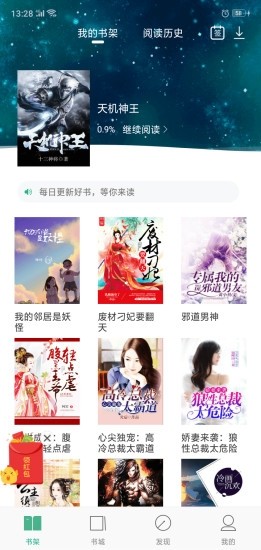 2、贴心书架功能,为你保存各种小说的阅读进度,还能够及时接收更新提醒,不错过精彩