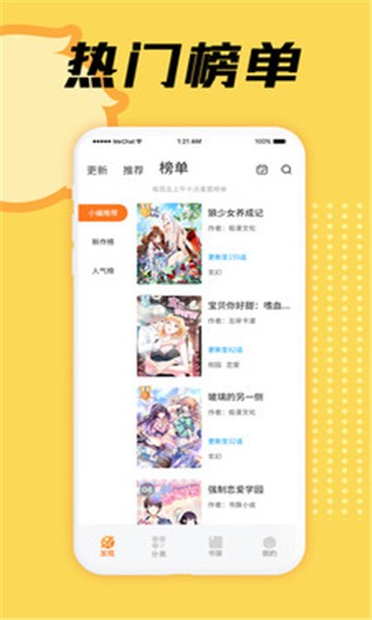 2、热门分类漫画榜单,新作榜、人气榜、推荐榜等等,让你不再漫荒,轻松找到好看资源
