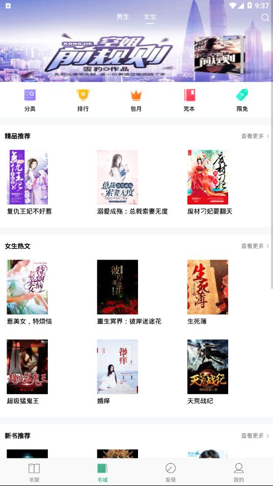 3、近百种小说分类,精彩多样,武侠、言情、玄幻、穿越、修仙、重生、仙侠等小说应有尽有