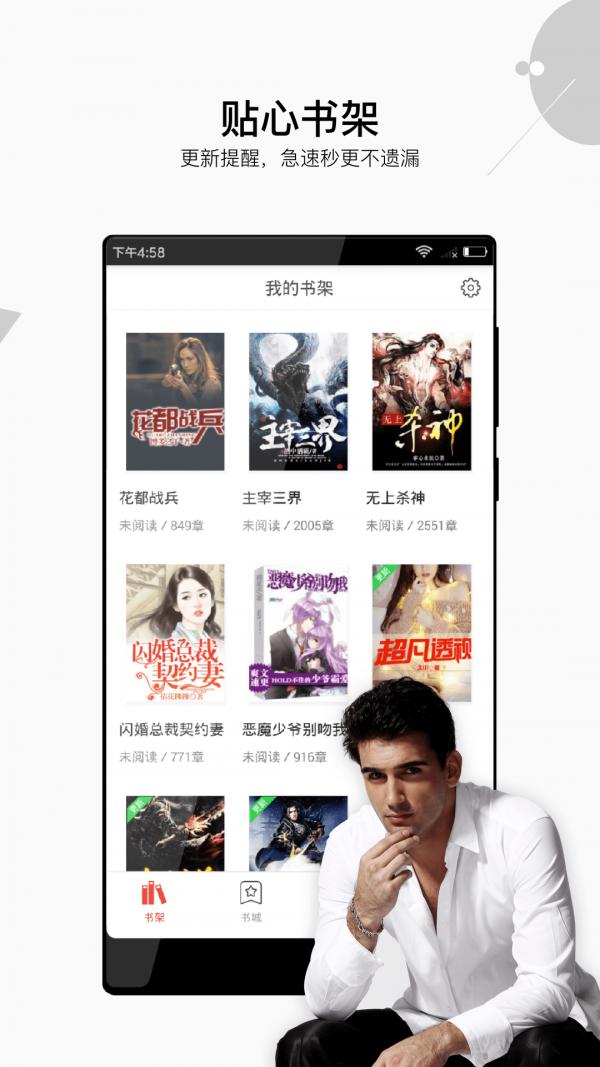 3、自定义阅读界面排版,加载迅速、自由下载,贴心的小说更新提醒功能,第一时间看更新