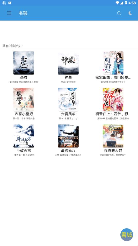 2、拥有资源丰富的书城,可以将爱看的小说添加到书架,保存你的阅读进度,追书更加的轻松