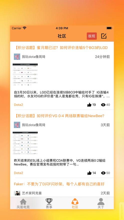 凤凰电竞是一款专门为电竞爱好者们推出的电竞资讯软件,让用户们能够轻松的在这里了解掌握到电竞行业的各种最新的资讯,包括了游戏更新、战队详情、赛况比分、游戏功能等等,一站系的新闻资讯为你提供,推荐下载!
