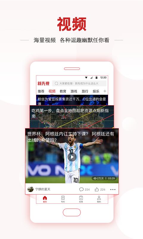 1、新先视app为用户带来海量视频和新闻,体育类、娱乐类、生活类……各种你想看的这里都有,满足你的娱乐需求