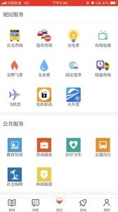 在线体验便民服务,当地人可以在此体验公交、违章、生活缴费以及快递、电影和出行等便民服务;