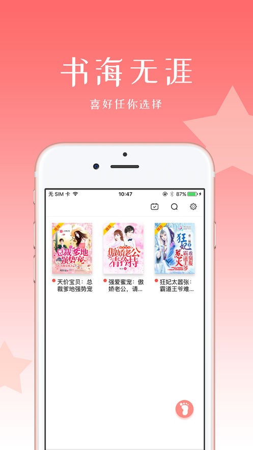 大量人气小说随心所欲看,好书推荐限时折扣看。当你厌烦千篇一律的手机小说商品,应用app,你将会有精美的应用感受。丰富多彩的完整小说,高品质的小说集內容、全方位的小说题材、更舒这的阅读文章感受尽在这里。