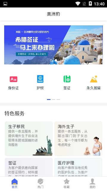 2、首页:提供了特色服务、热门推荐快捷导航菜单,一触即达,想要的移民服务应有尽有。