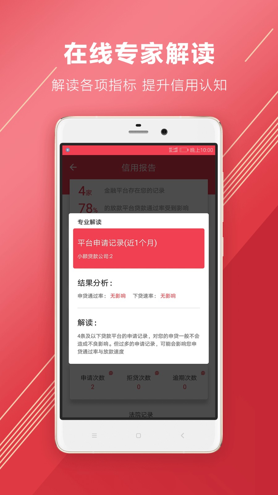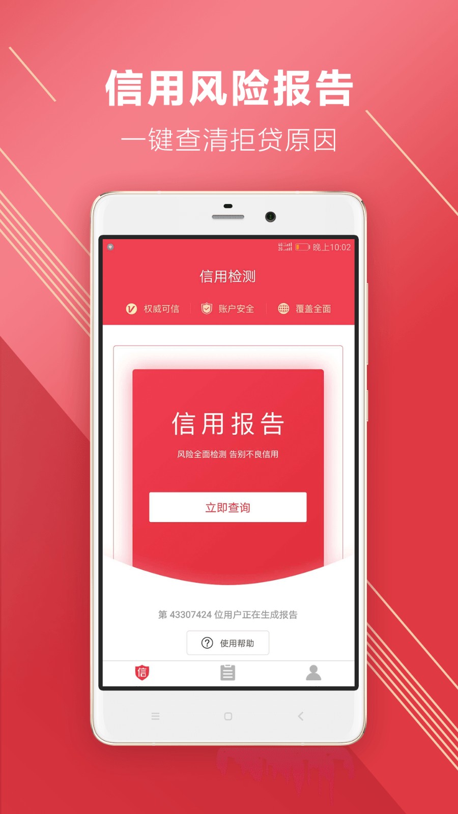 2.征信报告预警:风险报告,在线秒查,全面检测信用风险,告别不良记录。