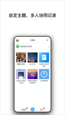 你可以创建任何主题的记录册,记录册app可以满足用户们的日常记录需求,独自记录每天的心情故事,并且平台上面还支持主题自定,多人协同记录呢,持续支持更多形式的内容,平台上面也支持和其他的好友互相分享自己的记录册,记录册,与你记录,一起幸福!