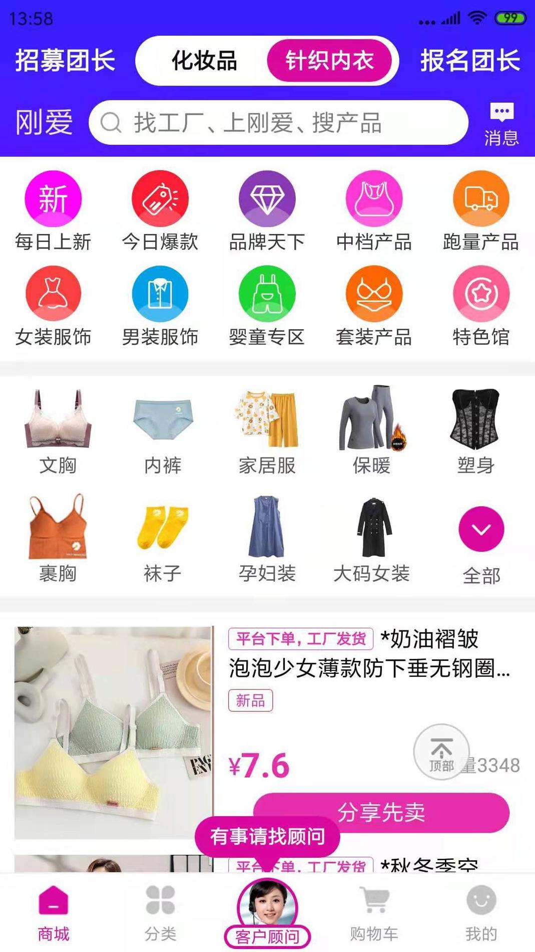 刚爱拼批是一款非常便捷又好用的手机批发购物商城软件,在软件中,用户将能够去使用该软件去进行商品的批发购物,软件里面用户能够去根据自己的选择来进行购物,商品都是十分的优惠。软件使用起来非常便捷方便,软件功能强大,欢迎用户去进行下载刚爱拼批。